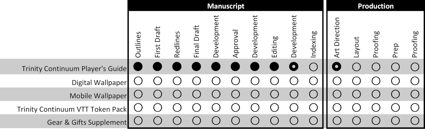 I've got one reward available to backers who added on the Trinity Continuum: Anima PDF during the campaign or in the Pledge Manager. The discounted Print-on-Demand links are now available in your BackerKit Digital Rewards page! Not a major reward, but one more little piece checked off the list.
